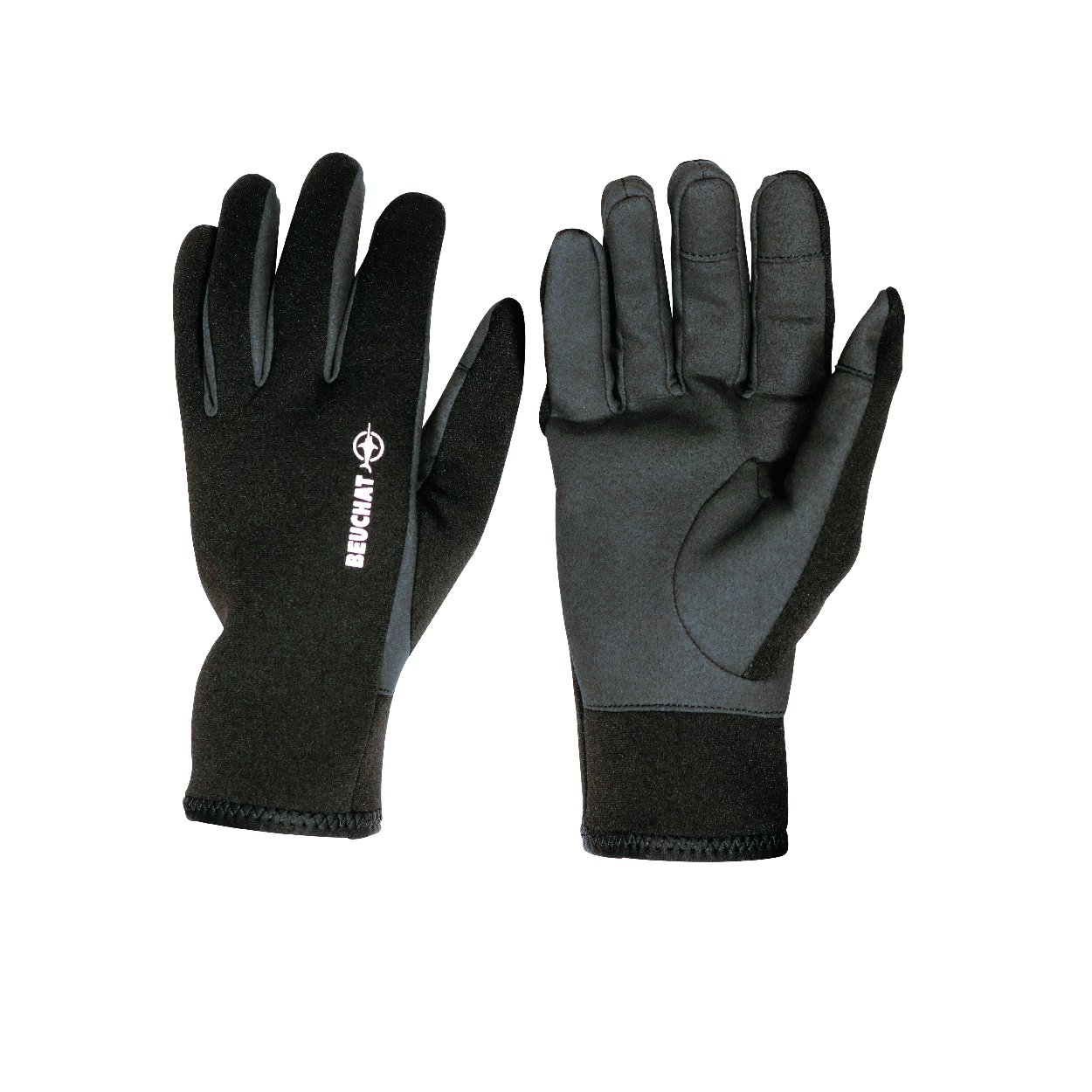 Guantes de neopreno ecológico ultra-elástico de 1,5 mm con refuerzo de cuero sintético en la palma y los dedos.
