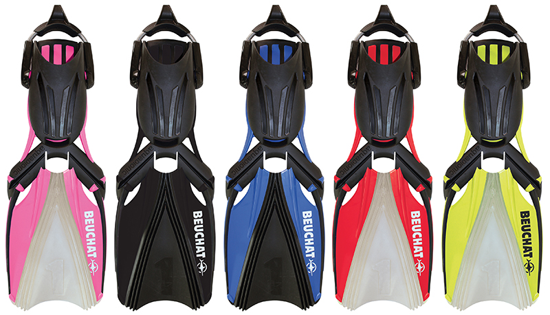 En matière de propulsion, les plongeurs débutants préfèreront la gamme de palmes de plongée Flexjet, en version chaussantes : leur voilure bi-matière à tuyères est parfaite pour s’initier au palmage. Les plongeurs plus avancés, eux, aimeront la gamme Aquabionic ou Powerjet et ses tuyères souples canalisant les flux sans rigidifier la structure. Les palmes tri-matières Powerjet, chaussantes ou réglables, sont disponibles avec deux niveaux de rigidité : Regular Flex, destiné aux plongeurs réguliers, et Firm Flex, pour les plongeurs confirmés, qui permet un palmage plus efficace en terme de rendement.