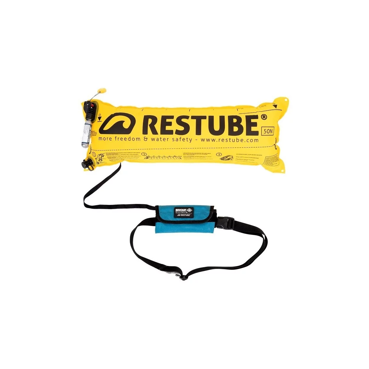 Dispositivo di sicurezza e di ausilio alla galleggiabilità. Beuchat Restube consente allo snorkeler di ritornare in superficie e mantenersi a galla in caso di problemi in acqua.