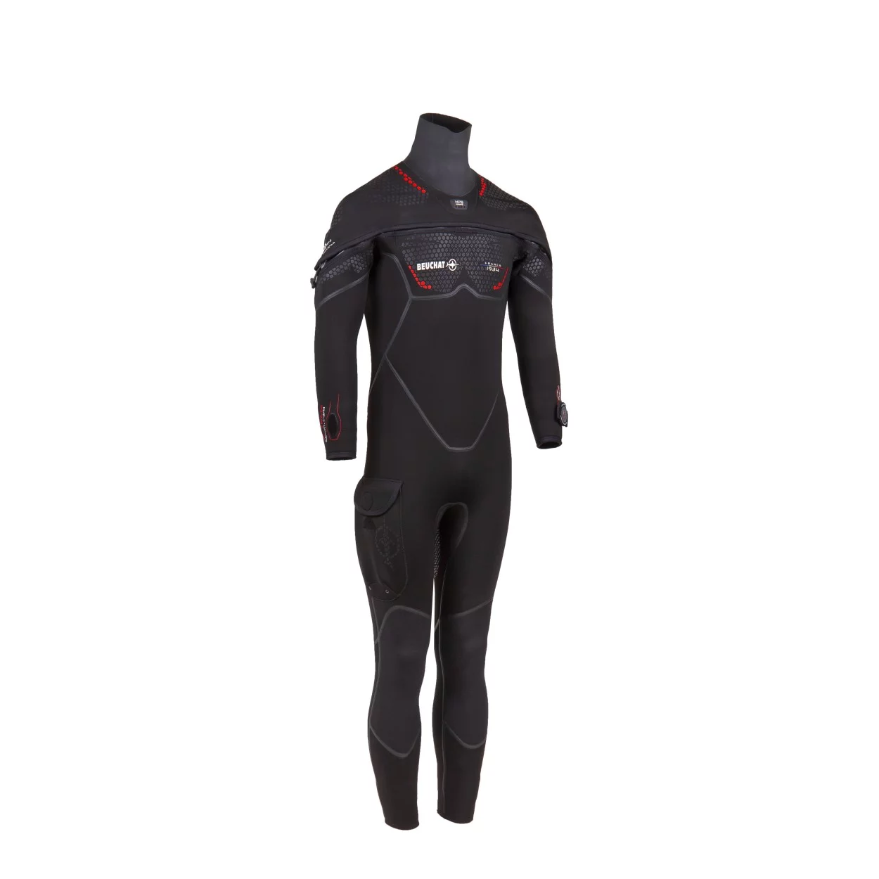 Lo speciale disegno a tenuta di liquido di Beuchat per una tuta molto confortevole.